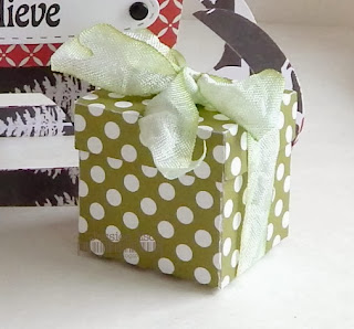 For each of the presents, I wrapped 3GJ crinkle ribbon in Ribbon Candy, Dress White, and Holly Berry. The great thing about the presents is there is room in them for little treats~so fun!!