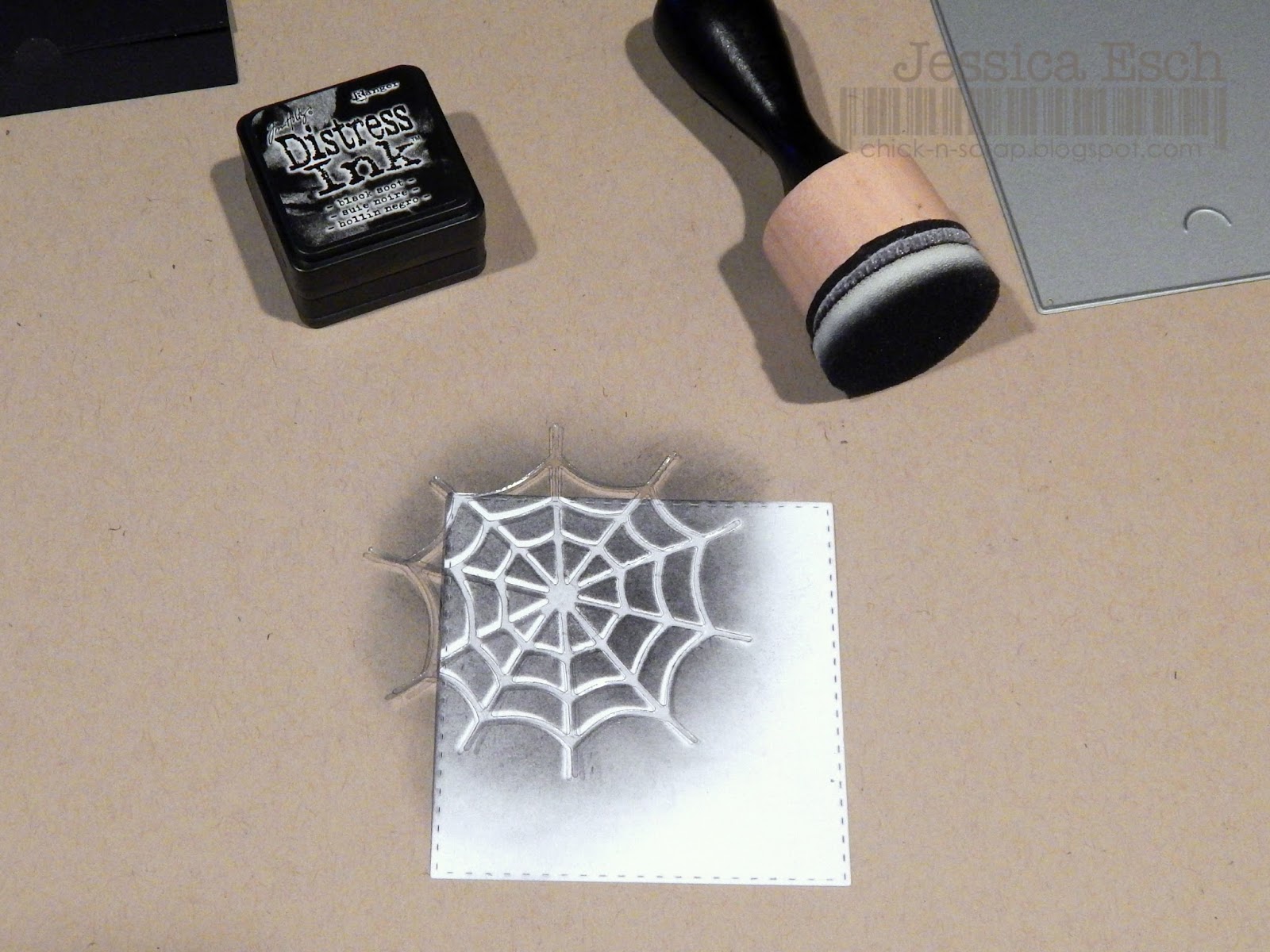 I die cut the spider web out onto a piece of acetate. Loving the details that this die has it makes for a perfect stencil!